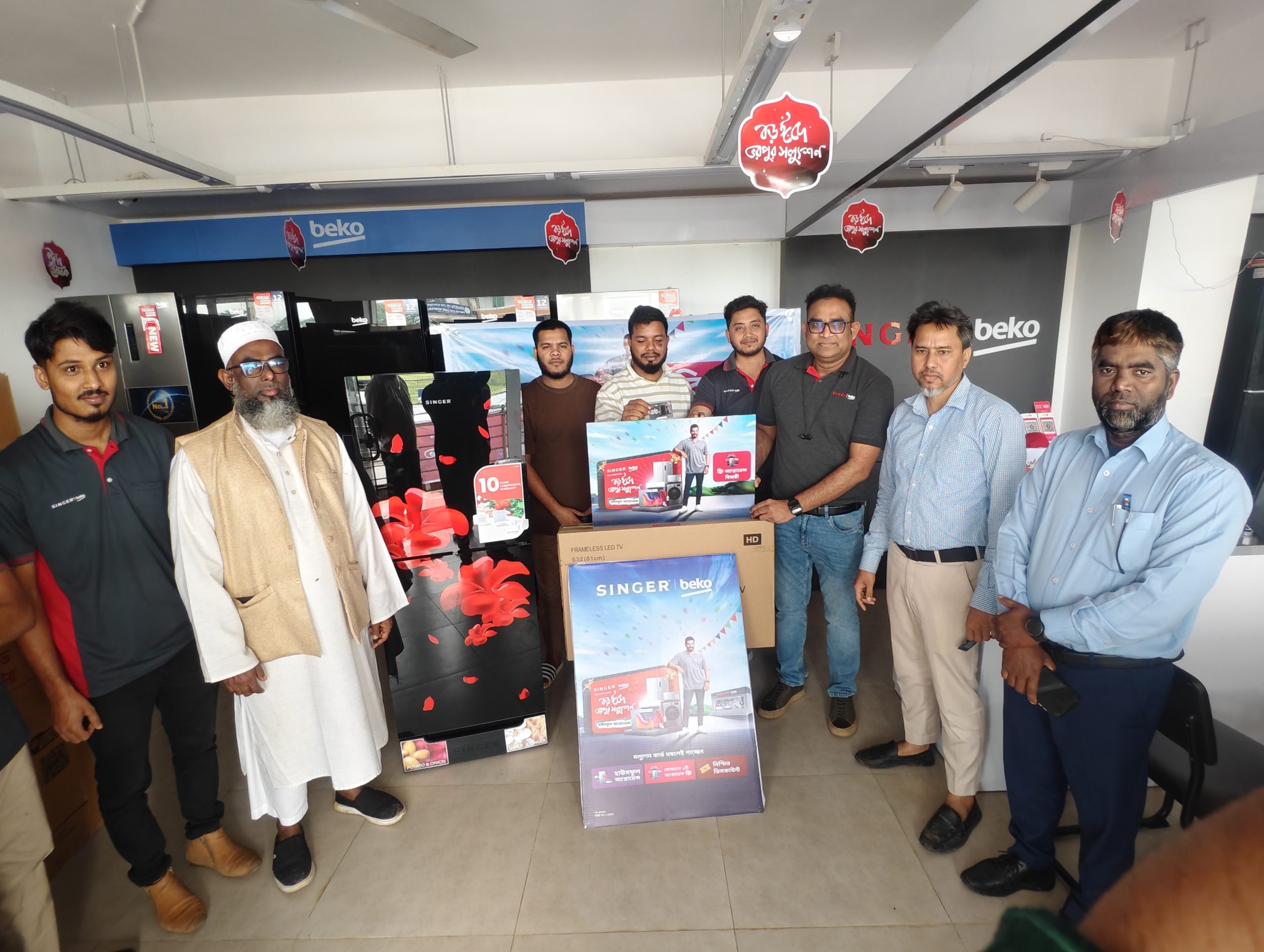 জাউয়া বাজারে সিঙ্গার বেকো শোরুমে ফ্রিজ কিনে বিজয়ী আলম,পুরস্কার বিতরণে আনন্দঘন আয়োজন